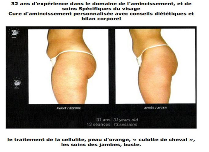 37 ans d’expérience dans le domaine de l’amincissement, c’est ce dont peut se prévaloir cette spécialiste dans le domaine des soins amincissent, le traitement de la cellulite, les soins anti-rides, soins Guinot, peeling …